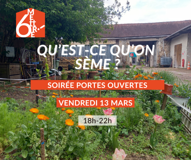 Le vendredi 13 mars 2026 de 18h à 22h, 6Mettre ouvre grand ses portes pour une soirée qui mêle création artistique et jardinage. Comment faire éclore les projets qui nous réuniront demain ? Dans quel terreau nourrir nos envies de créer, d’imaginer ?